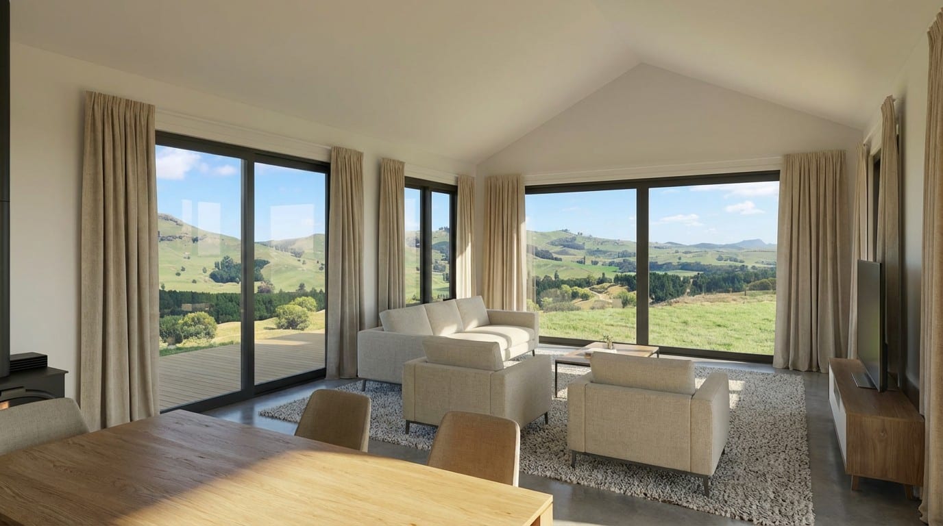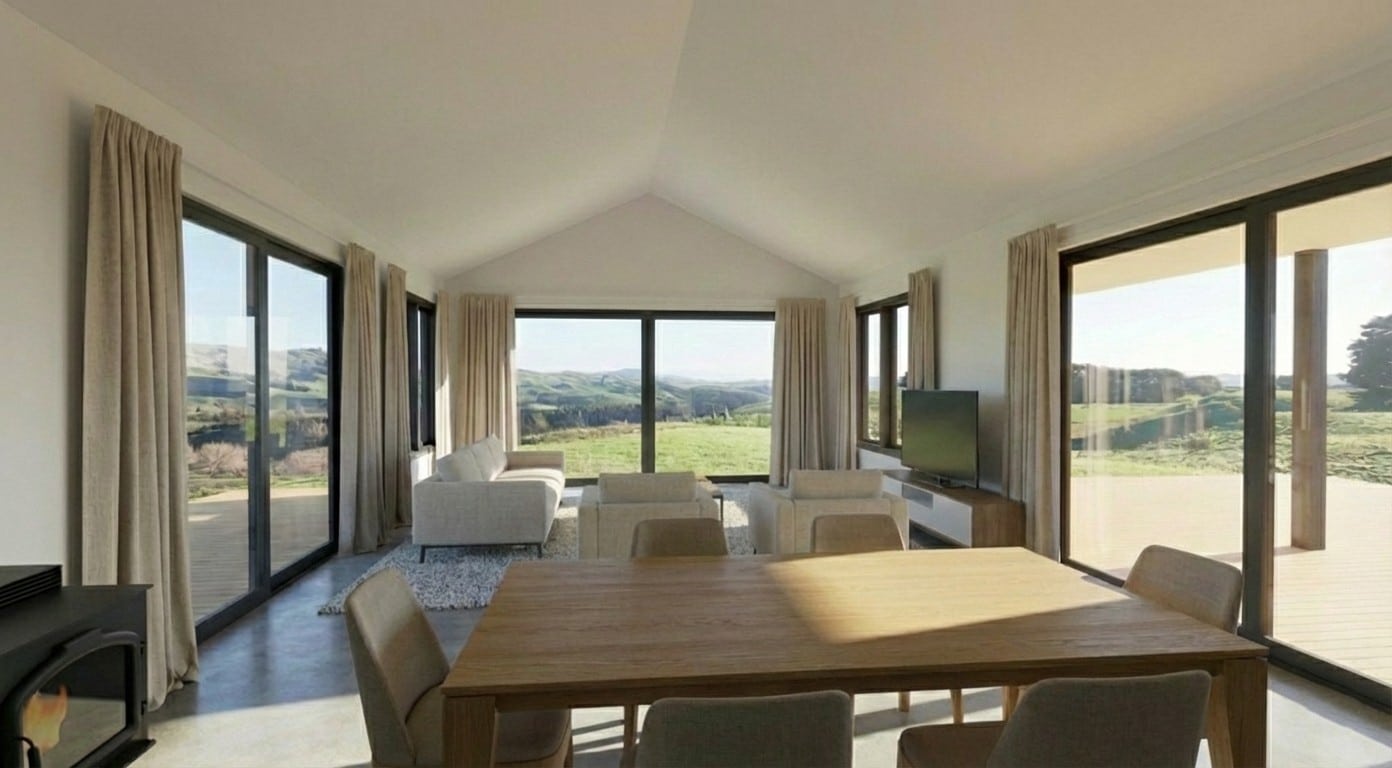 Set within the sweeping rural landscape of Kahuranaki Valley, this thoughtfully designed 180m² board and batten home blends modern comfort with relaxed country living. The layout features two bathrooms, an integral garage, and a generous living area. The area is enhanced by scissor truss ceilings for added height and light. A separate 70m² shed with toilet provides versatile space for work or storage. Designed to capture expansive valley views, this home reflects SS Homes Hawke’s Bay’s commitment to functional design and timeless rural architecture. Check out the Floor plan